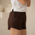 These stylish high-waist linen shorts combine effortless comfort with practical design. Featuring convenient side pockets and crafted from pre-washed, softened linen, they offer a naturally soft feel and relaxed, flattering fit—perfect for warm days and casual outings.